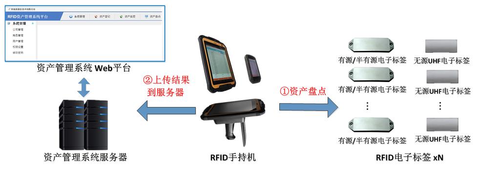 系統(tǒng)由RFID電子標(biāo)簽、RFID手持機(jī)、RFID固定式閱讀器以及RFID資產(chǎn)管理系統(tǒng)平臺(tái)構(gòu)成。