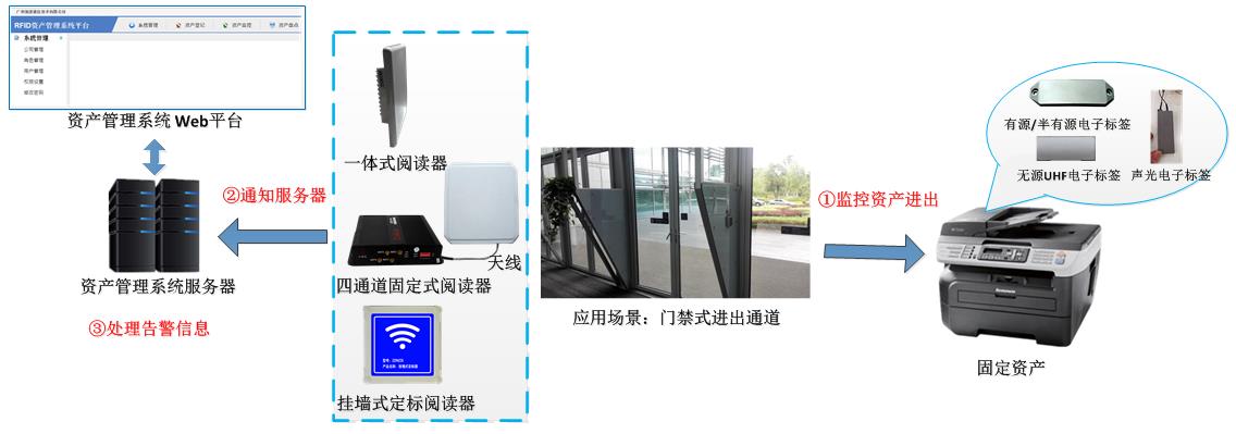 在進(jìn)出通道部署門禁式RFID識(shí)讀器,對(duì)進(jìn)出通道資產(chǎn)進(jìn)行識(shí)讀。