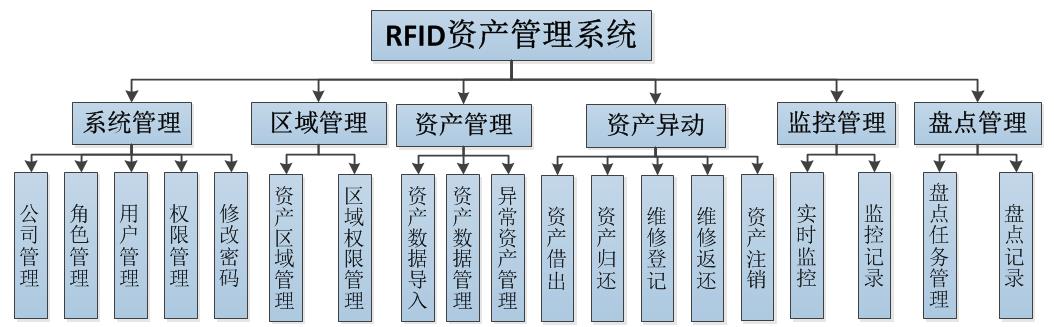 RFID資產(chǎn)管理系統(tǒng)平臺(tái)功能如下圖所示。